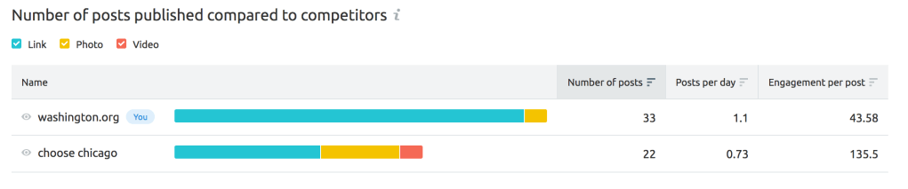If you chose Chicago, you’d be correct. Destination DC’s image post has an engagement rate of 19.7%. These are excellent numbers and fantastic engagement for Facebook.